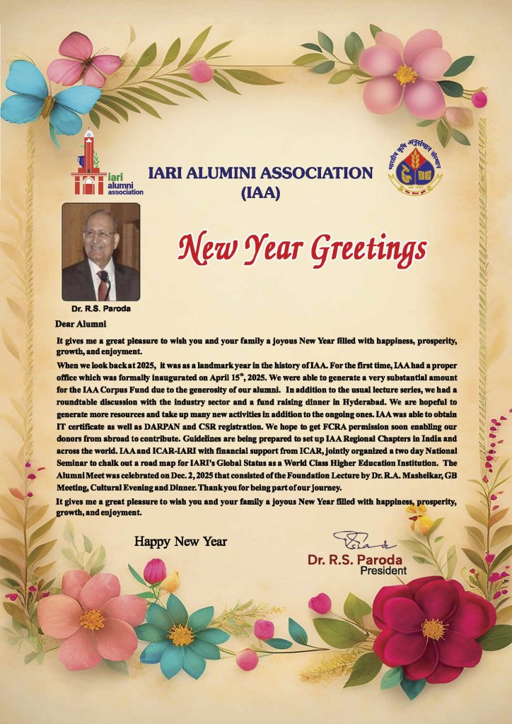 Welcome to the IARI Alumni website, an exciting new initiative crafted to amplify our networking, enhance visibility, and disseminate information about the diverse activities of our esteemed alumni and our beloved Alma Mater. The IARI Alumni Association (IAA), formally registered on December 2, 1992, has since been a vital platform for fostering connections, sharing knowledge, and strengthening the bond between alumni and the Institute. As alumni of IARI, we are privileged to have received an education that empowers us to catalyze agricultural growth in India. IARI’s legacy of excellence in agriculture remains a beacon of innovation and progress. Since the Green Revolution in the late Sixties, we have played a pivotal role in achieving household food security, nutrition, and environmental sustainability. Now, it is incumbent upon us to reciprocate to our alma mater and aid it in becoming a global leader in teaching, research, and extension activities. Our dedicated Executive Committee is diligently working towards realizing these objectives. Together, let’s forge a robust and dynamic alumni association that we can all take pride in. Stay connected, share your experiences, and join us in celebrating our collective achievements through this platform.